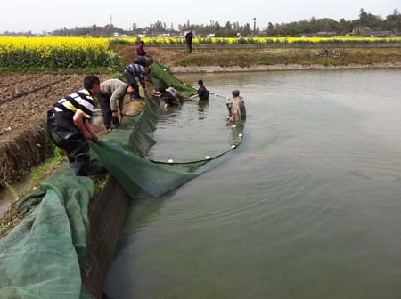養(yǎng)殖大口鯰豐收的場(chǎng)景